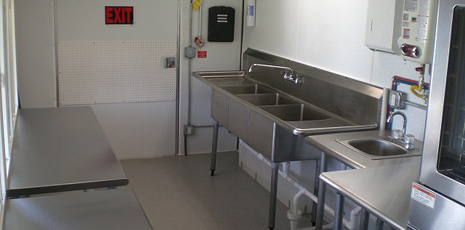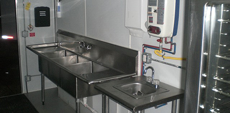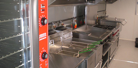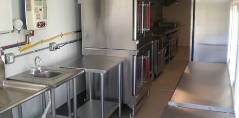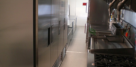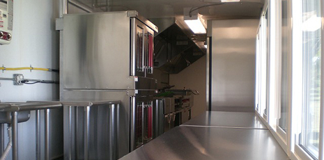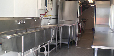 This 44' mobile kitchen (unit 44-001) from U.S. Mobile Kitchens delivers impressive capabilities. Choose from a wide range of appliances and support equipment. Your mobile kitchen comes complete with on-site set-up, support and removal services. All mobile kitchen units feature easy-to-clean stainless steel surfaces and non-slip flooring.