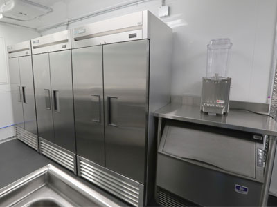 Units that are setup with 100% electric appliances may require between 200A & 600A 208V 3-Phase electrical feed, vs. a 100A 220V Single Phase feed for units equipped with gas appliances. Please ensure that your site will be able to meet these requirements. All installations require a licensed electrician. For more detailed information, call