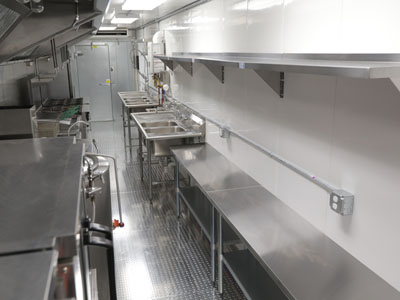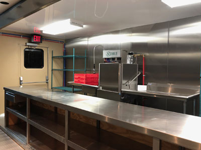 This 53-foot kitchen trailer comes complete with on-site set-up, support and removal services. Short and long-term cost-effective rentals and leasing options available.